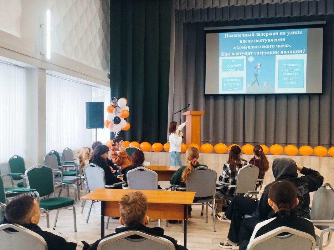 20.11.2025г. В рамках Всероссийского дня правовой помощи, в целях формирования правовой культуры, на базе Братского торгово-технологического техникума, специалистами постинтернатного сопровождения, совместно со специалистами Межрайонного управления министерства социального развития опеки и попечительства Иркутской области № 7, Братского филиала ОГКУ « Кадровый центр Иркутской области » организовано мероприятие. Для обучающихся провели деловую игру «Имею право и обязан. Просто о законе», викторину по правилам безопасности, где требовалось ответить на правовые вопросы. Знание прав помогают учащимся осознать социальную ценность права как средства защиты личности и общества, усвоить конкретные правила поведения в учебном учреждении и вне техникума, ориентированные на уважение прав и свобод других не забывая о безопасности. Во время проведения мероприятия все студенты были активны, с удовольствием и интересом участвовали в ситуативных играх, отвечали на вопросы, участвовали в обсуждении по заданной теме. Подобные познавательные мероприятия несомненно позволяют повысить уровень правовой грамотности подрастающего поколения, воспитывают его в духе уважения к закону, что положительно сказывается на снижении уровня правонарушений в молодежной среде. Все участвующие сделали выводы о значимости для каждого человека правоприменительных знаний и соблюдения прав и обязанностей.