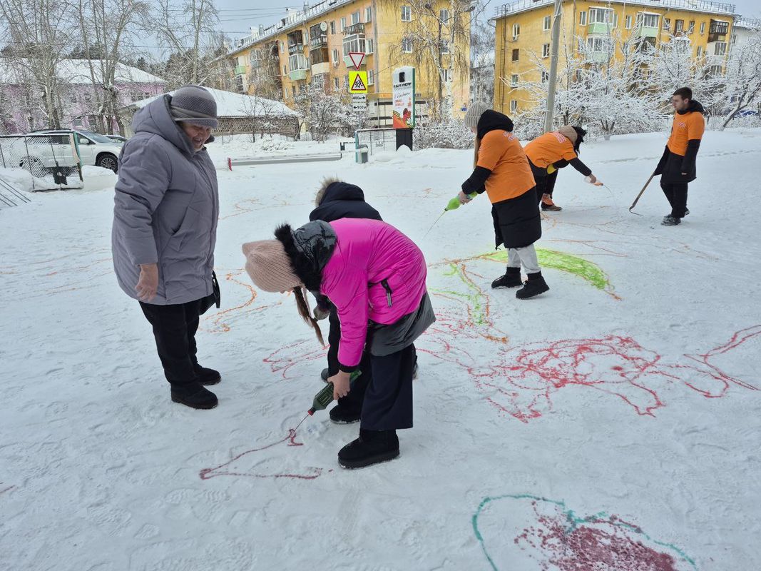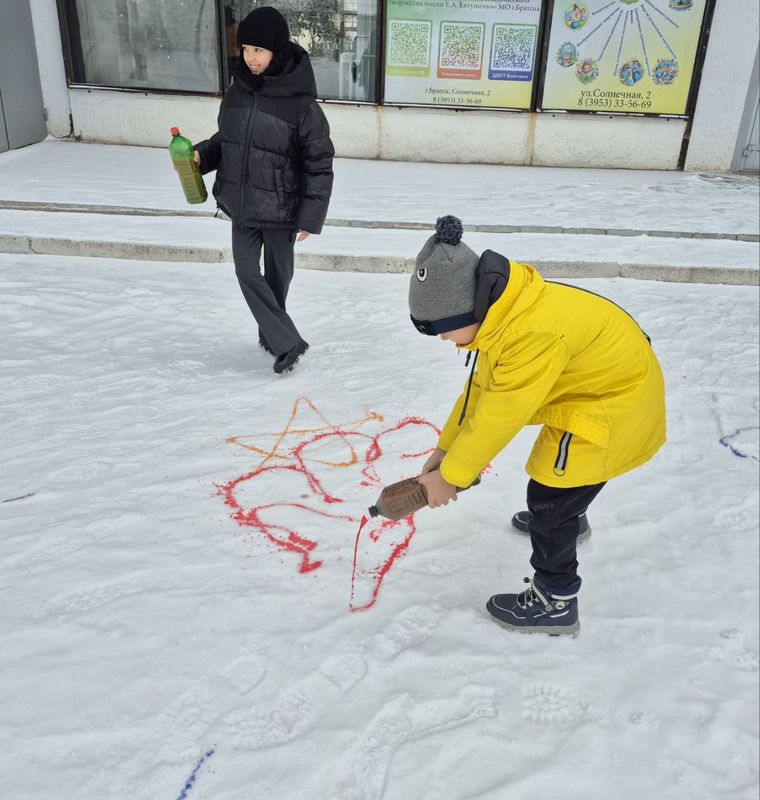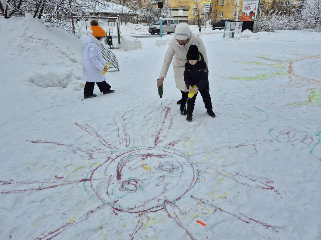 День рисования солнца на снегу — неофициальный праздник, который отмечается ежегодно 31 января. Он посвящён зимнему настроению и детской радости, а также символизирует ожидание весны и стремление к свету. Рисование солнца на снегу напоминает о способности человека видеть красоту даже в холодное время года. В рамках клуба выходного дня семьи из отделения сопровождения семей с детьми с ОВЗ ЦПД г.Братска вместе с ребятами из волонтерского объединения «Стриж» провели интересное досуговое мероприятие «Рисуем солнце на снегу». В этот зимний морозный денёк, вооружившись бутылочками с разноцветной водой ребята изображали на снегу различные линии, предметы. На просторных снежных «холстах» появилось множество прекрасных художественных творений. Дети были в полном восторге, когда в результате рисования «необычными красками» на белом снегу появлялись веселые желтые, красные, оранжевые узоры. Детские творения получились весьма оригинальными. Рисование на снегу - это интересная и несложная зимняя забава.