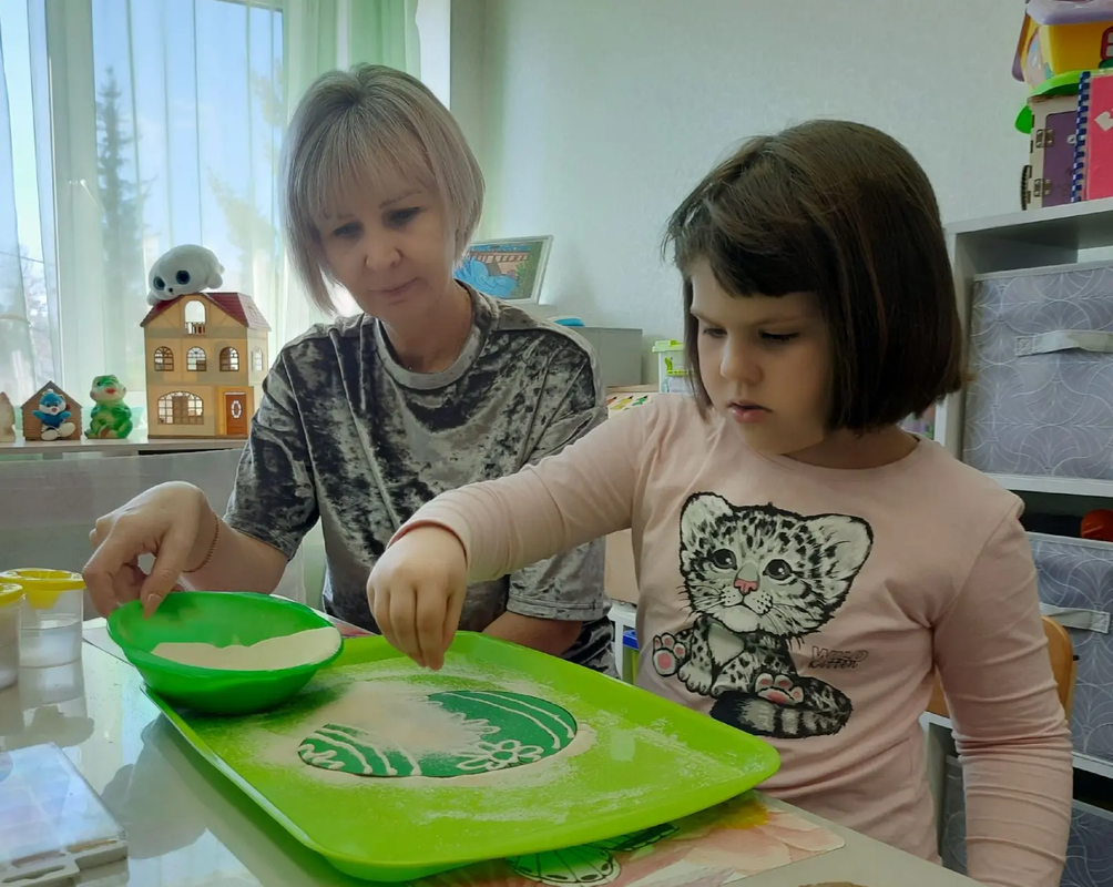 В отделении сопровождения семей с детьми с ОВЗ "ЦПД г. Братска", прошло тематическое занятие "Пасхальные чудеса" посвященное празднованию Светлого Христова Воскресенья В ходе занятия, работа велась с учетом индивидуальных особенностей и возможностей каждого ребенка. Педагог в доступной форме раскрыла значение праздника и познакомила детей с его традициями. Знакомство с символикой Великой Пасхи осуществлялось с помощью понятных и интересных детям видов деятельности. Особое внимание уделялось развитию сенсорного восприятия и мелкой моторики. Ребята работали с помощью необычного материала: манной крупы и акварельных красок. Такой прием, не только способствует развитию мелкомоторного навыка и воображения, но и дарит невероятные тактильные ощущения! Дети, с интересом исследовали текстуру манки, смешивали ее с красками, создавая собственную пасхальную композицию В результате, каждый ребенок создал уникальную поделку, наполненную теплом детских ладошек. Занятие подарило детям целый калейдоскоп положительных эмоций и стало для них настоящим творческим открытием.