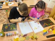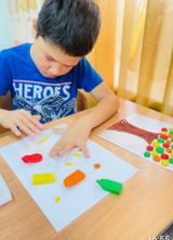 Ребята 1-й семьи, рисуют в технике «Монотипия», «Пластилинография».